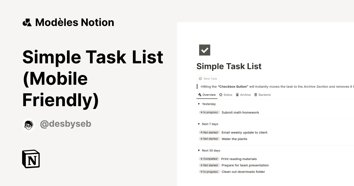 Simple Task List (Mobile Friendly) Modèle créé par desbyseb