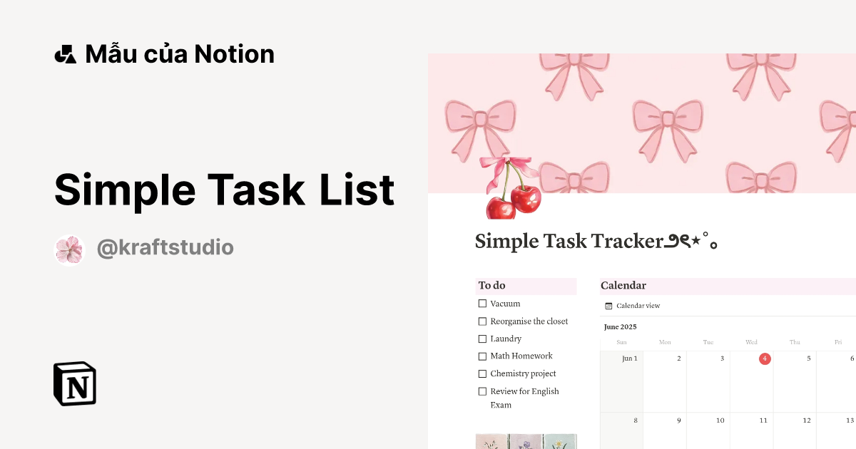 Mẫu Simple Task List Thị trường Notion