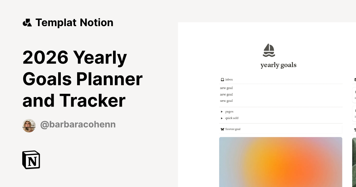 Aesthetic Yearly Goals Planner Templat oleh Bárbara cohen Notion