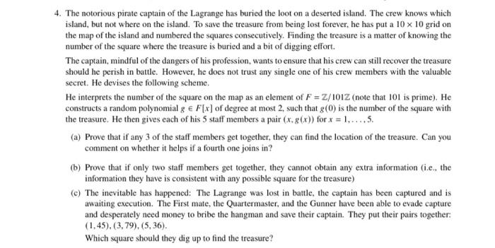 Solved 4 The notorious pirate captain of the Lagrange has Chegg com