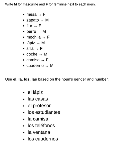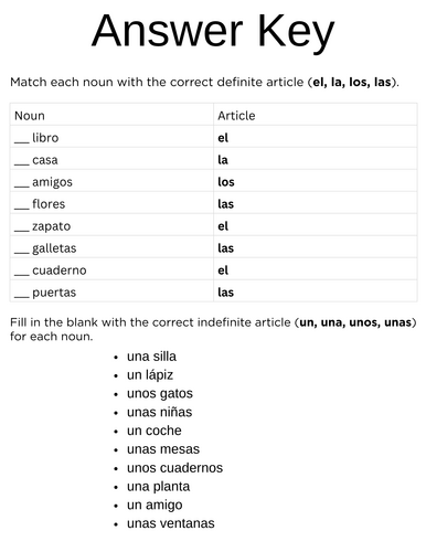 Articles in Spanish: Definite and Indefinite with Practices Teaching