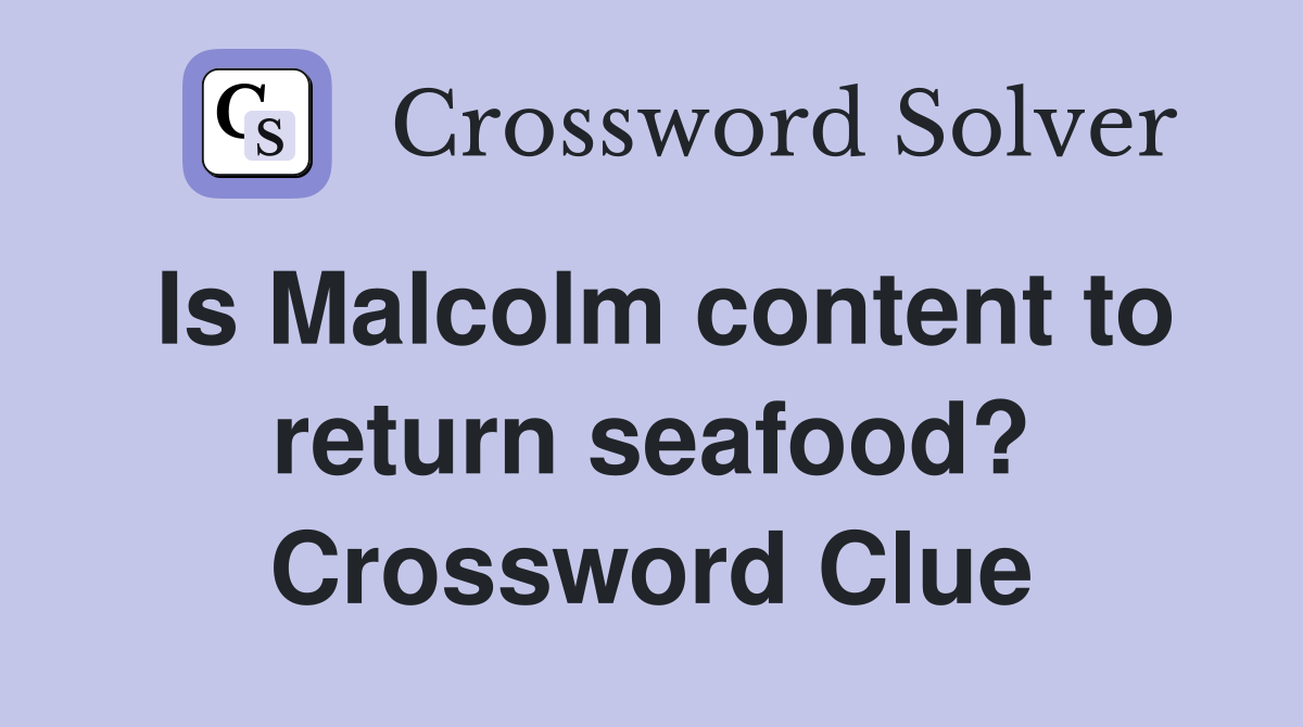 Is Malcolm content to return seafood? Crossword Clue Answers