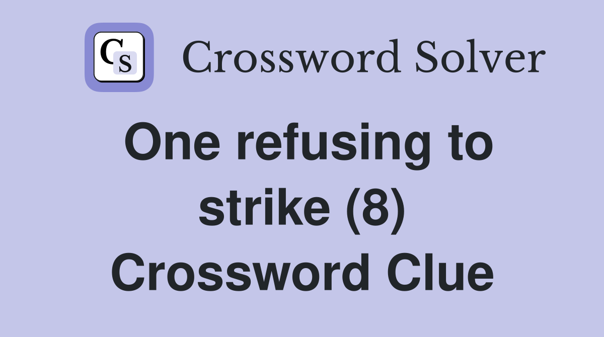 One refusing to strike (8) Crossword Clue Answers Crossword Solver