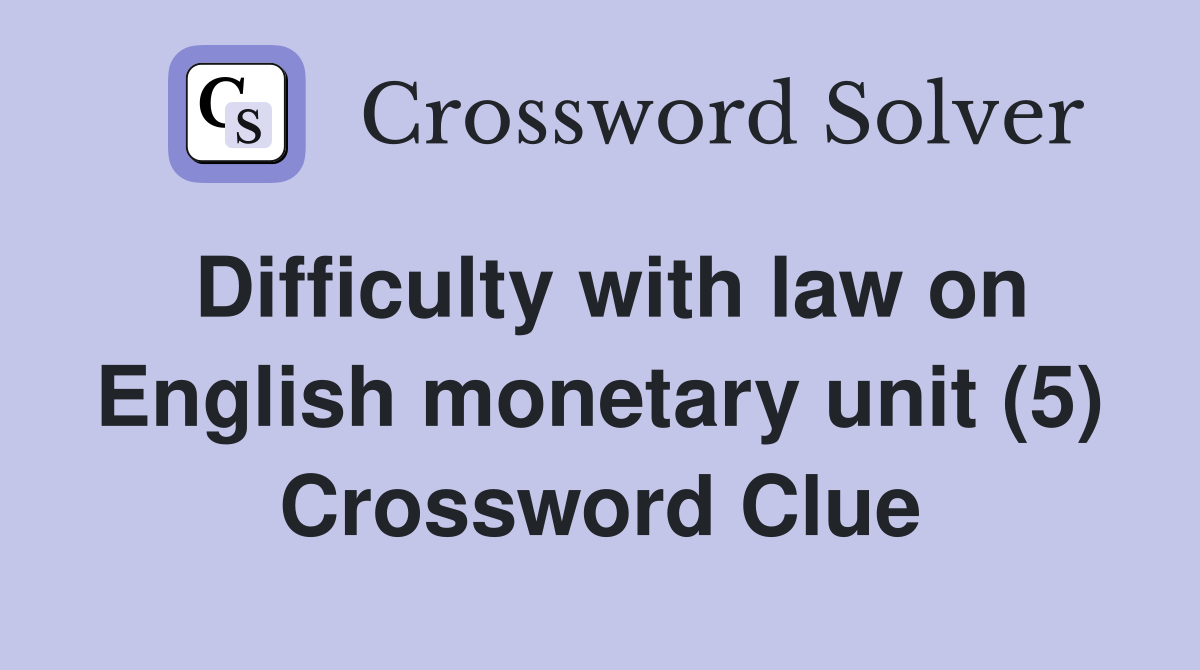 Difficulty with law on English monetary unit (5) Crossword Clue