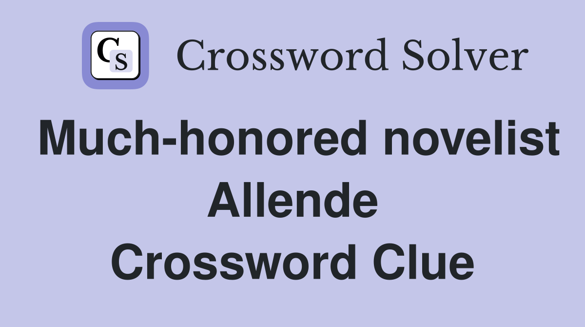Much honored novelist Allende Crossword Clue Answers Crossword Solver