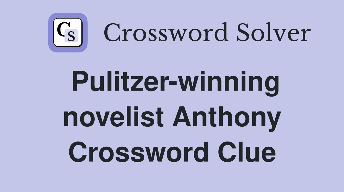 Pulitzer winning novelist Anthony Crossword Clue Answers Crossword