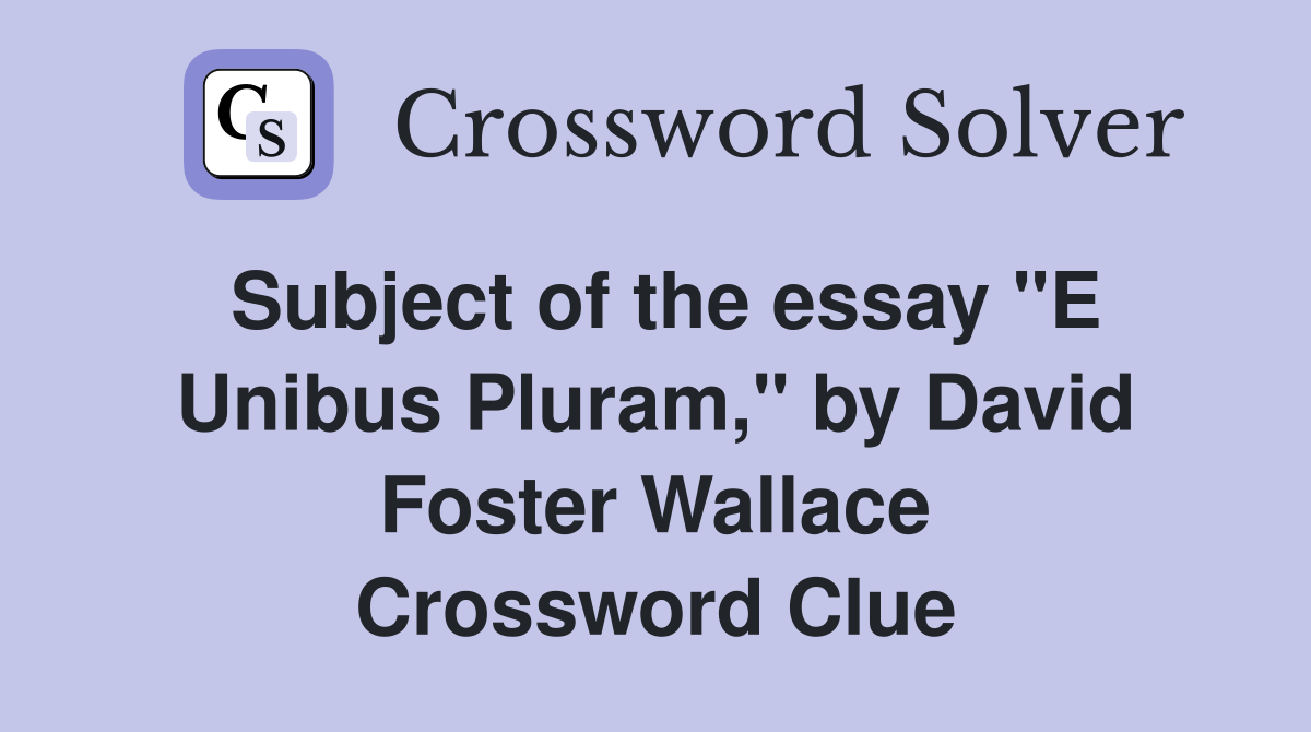 Subject of the essay quot E Unibus Pluram quot by David Foster Wallace