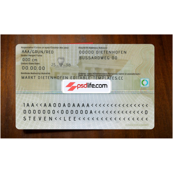 germany id card psd template free download