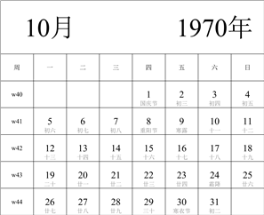 1970年日历表 1970年农历表(阴历阳历节日对照表) 日历网