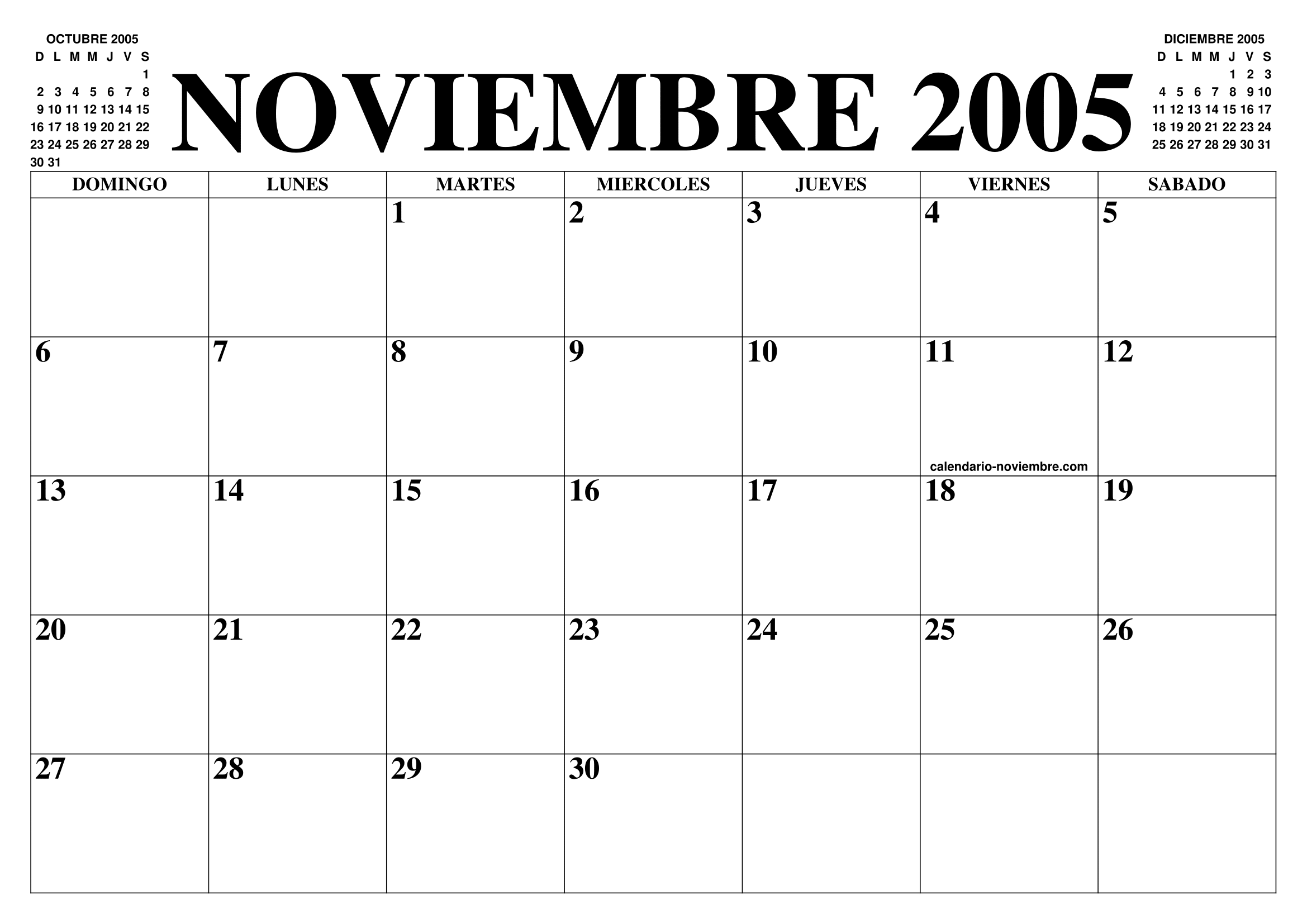 CALENDARIO NOVIEMBRE 2005 : EL CALENDARIO NOVIEMBRE PARA IMPRIMIR