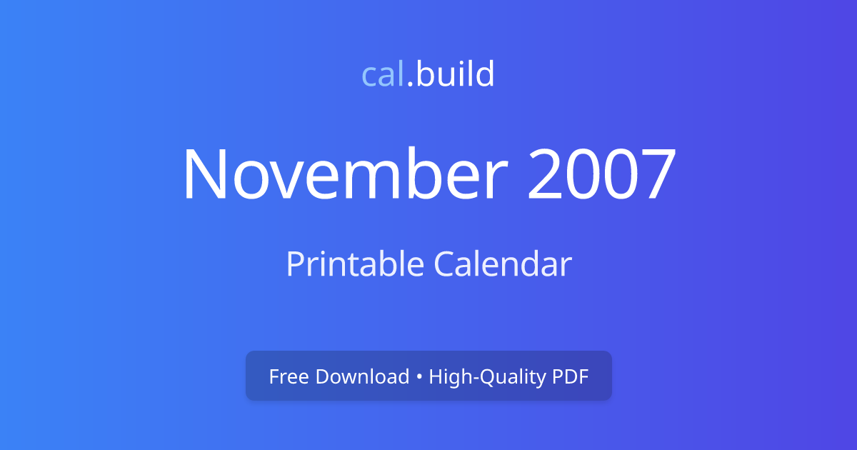 November 2007 Calendar Printable Free Download