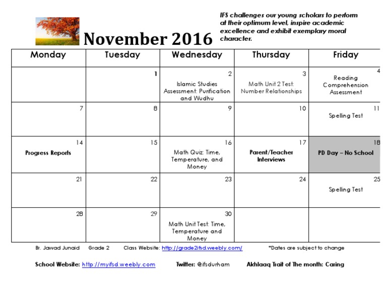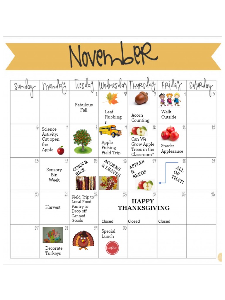 november 2016 calendar page 1 The Premier Child Care Centers Near