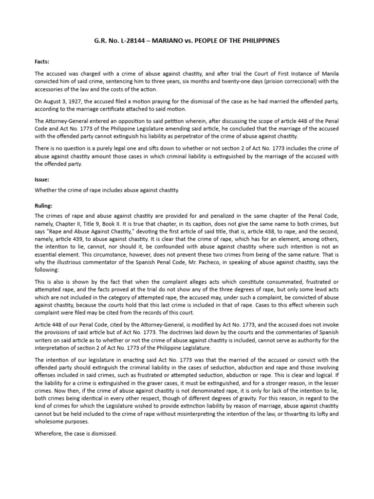 Case 9 GR No L 28144 (Mariano Vs People of The Philippines) PDF