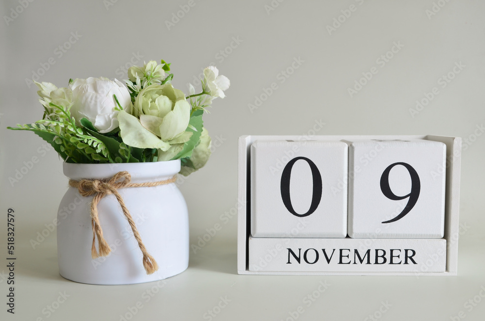 November 9 Cover natural background white wooden Calendar cube with a