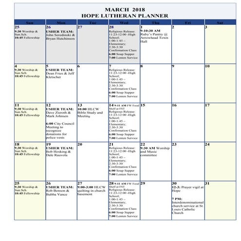 March 2015 calendar PDF
