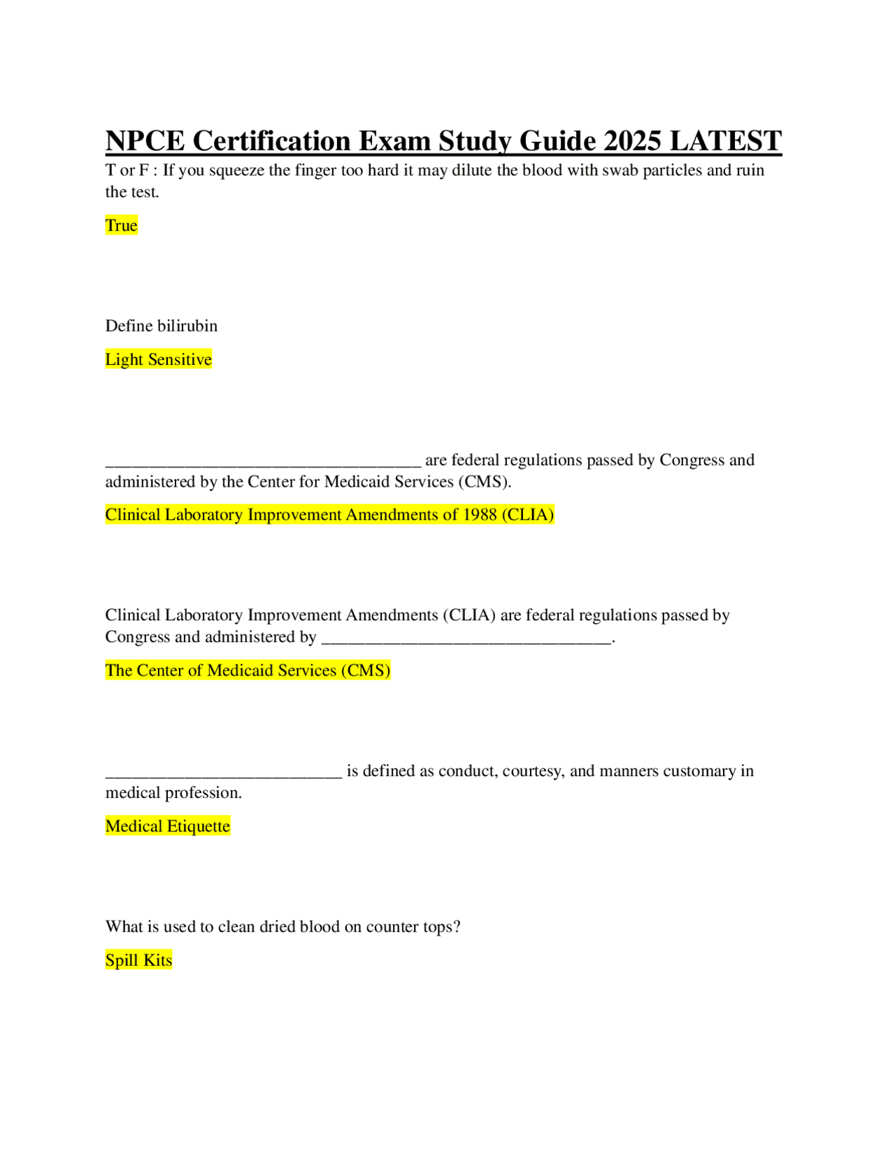 NPCE (NATIONAL PILATE CERTIFICATION EXAM) AND PRACTICE EXAM NEWEST 2025