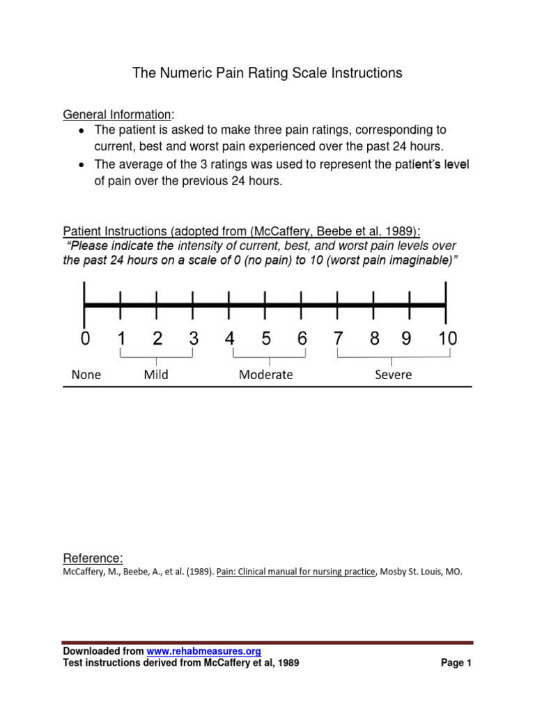 Numeric Pain Rating Scale Instructions PDF