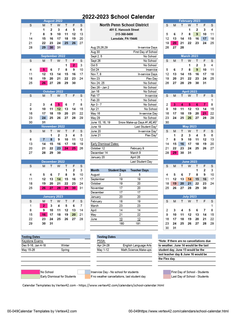 North Penn School District Calendar 25 26 Revised PDF EduCounty
