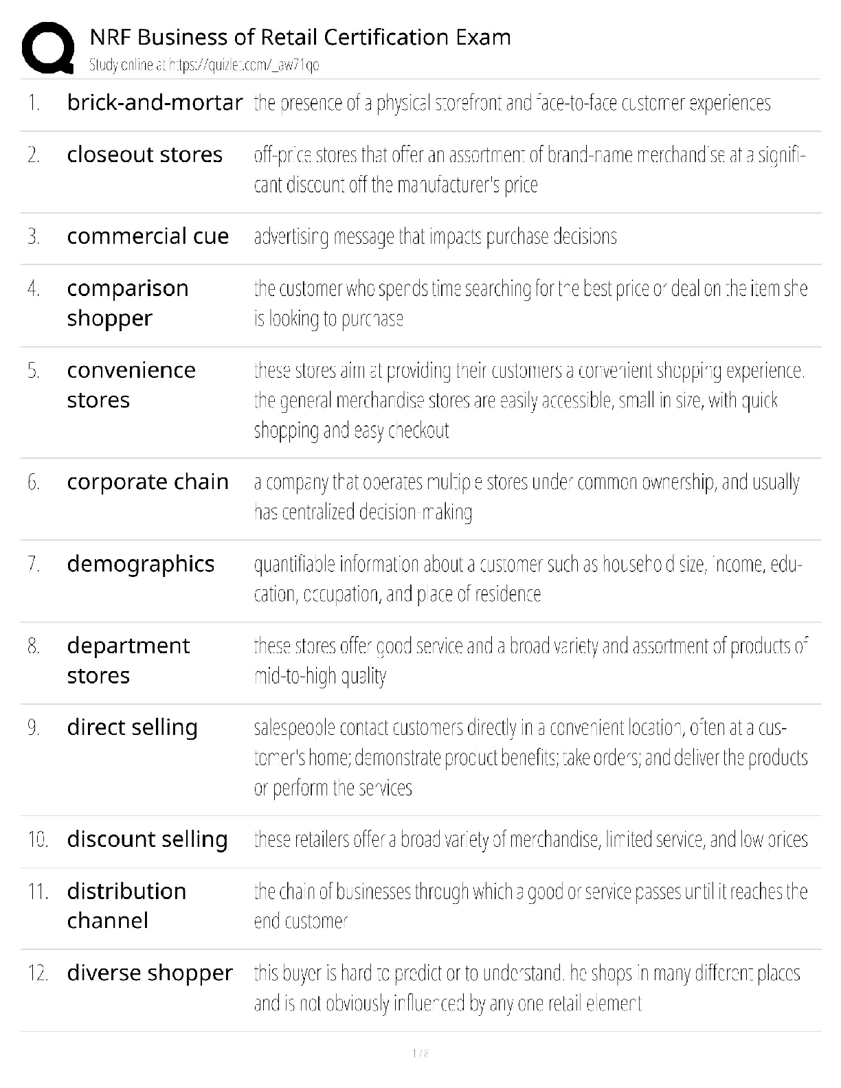 NRF Customer Service Study Guide Part 1 (Questions And Answers) NRF