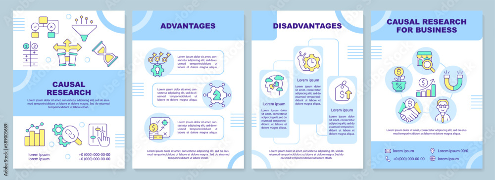 Vetor de Causal research blue brochure template Marketing tool
