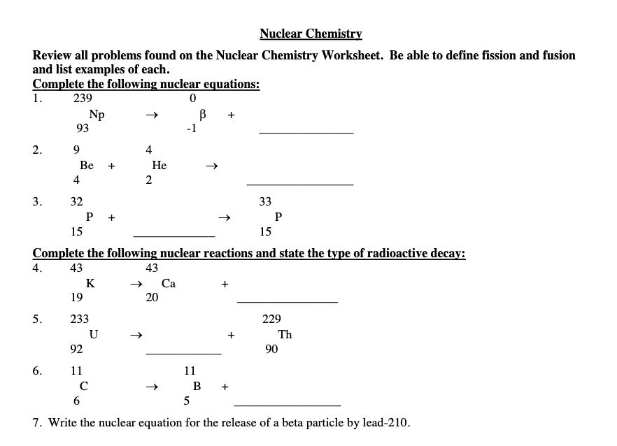 Nuclear Chemistry Worksheet K Lovely 7 Writing Nuclear Equations Chem