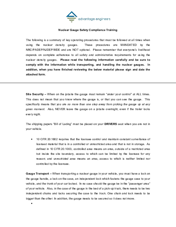 Nuclear Gauge Safety Certification Course with Complete Solutions