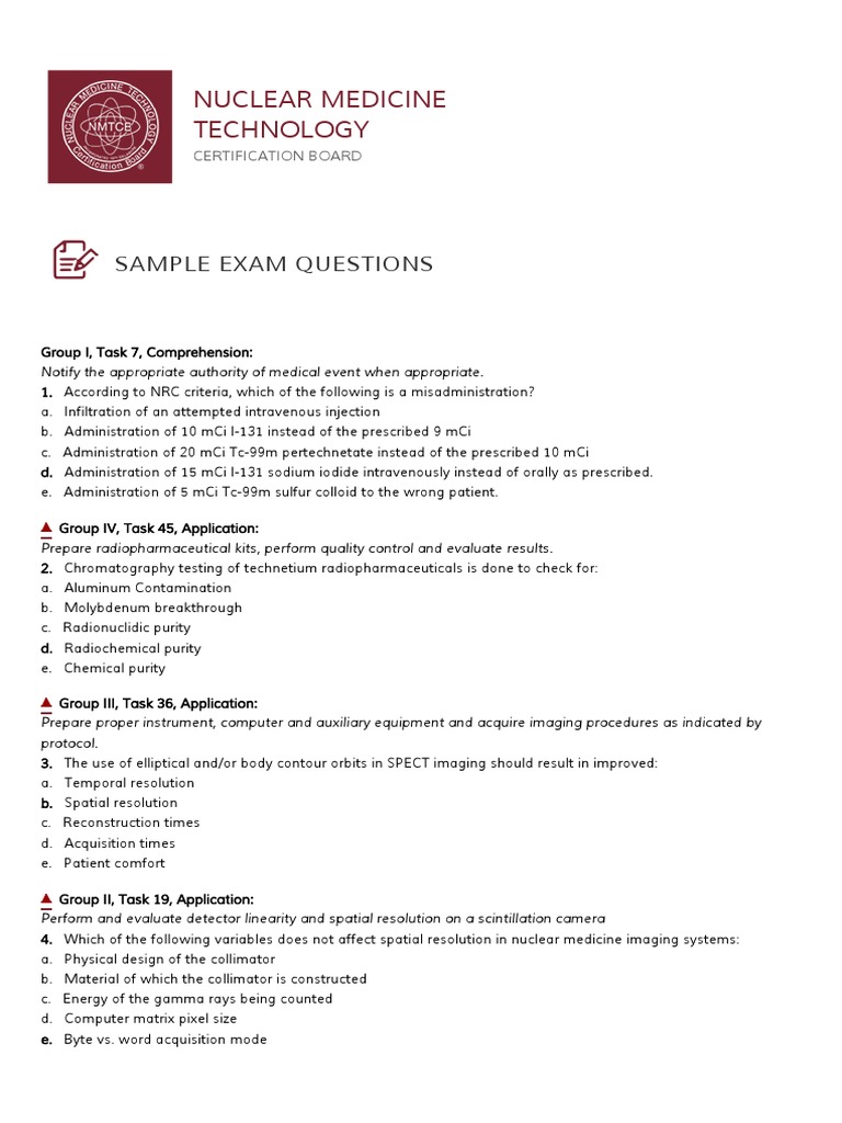 Sample Exam Questions Nuclear Medicine Technology Certification Board