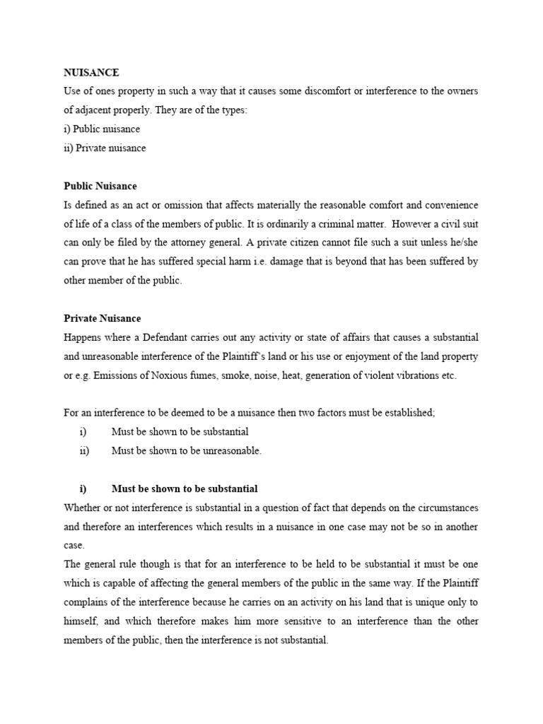 NUISANCE UNDER LAW OF TORTS LawFoyer