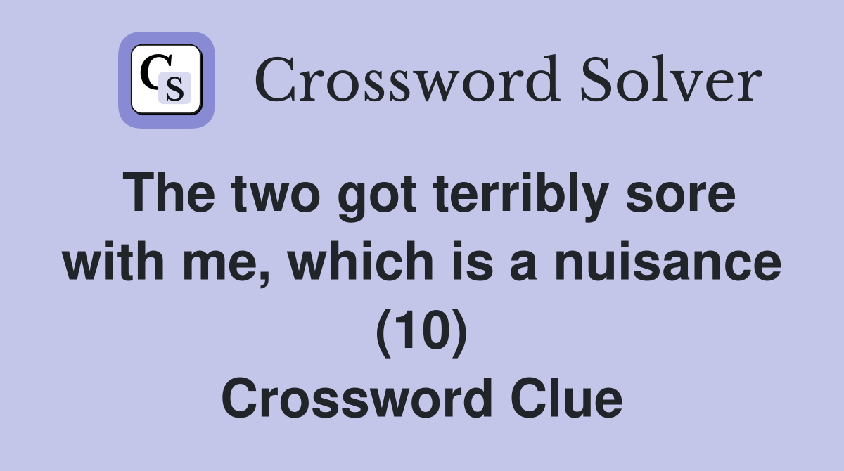 The two got terribly sore with me which is a nuisance (10) Crossword