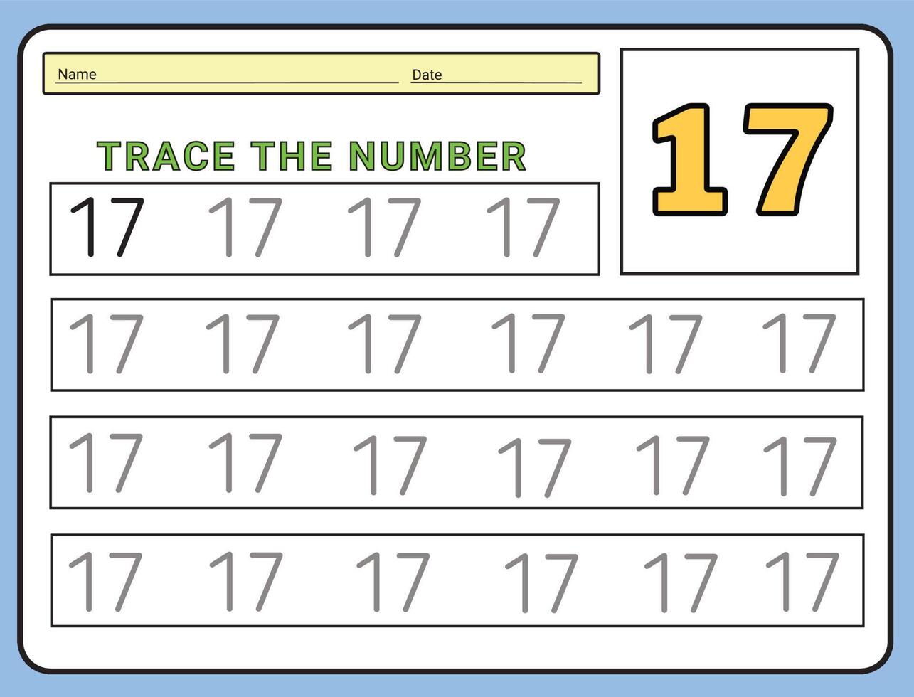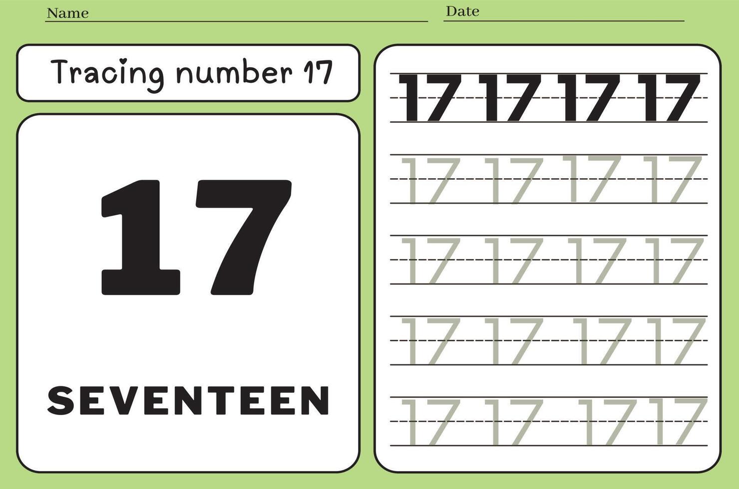 Number 17 Tracing Worksheet for Preschool EnglishBix