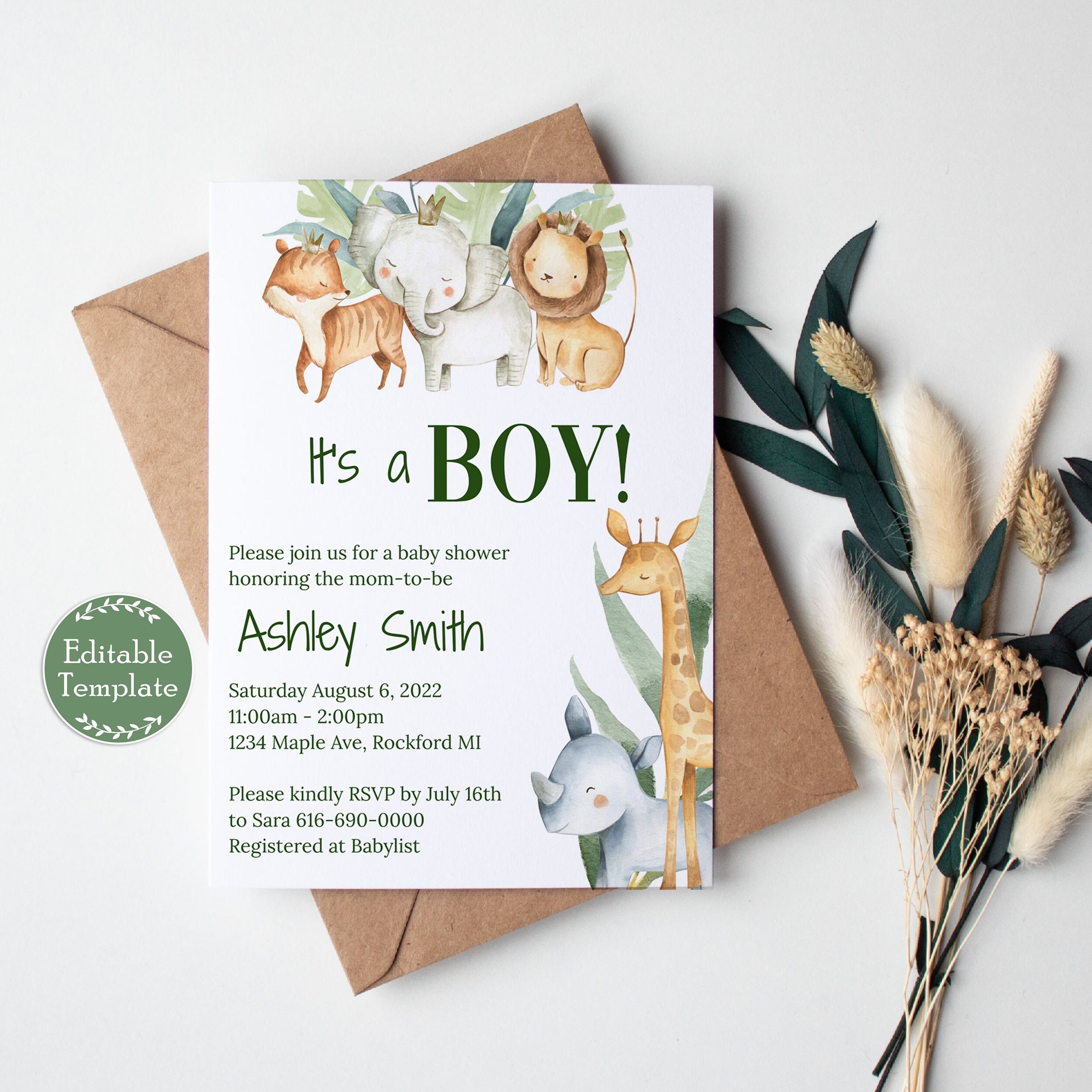 It #39 s A Boy Safari Baby Shower Invitation Template Etsy