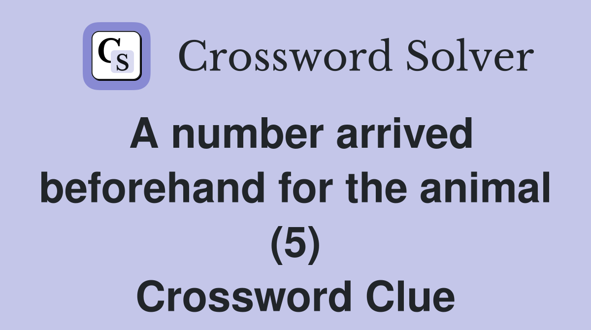 A number arrived beforehand for the animal (5) Crossword Clue Answers