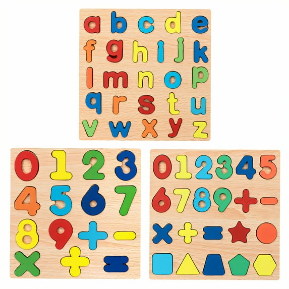 BESTSKY 3Pcs Wooden Puzzles for Toddlers 1 3 Numbers Letters