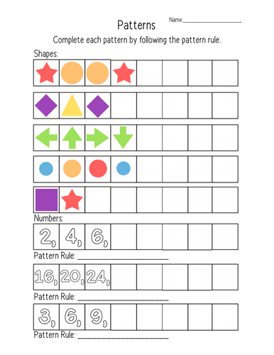Shape and Number Patterns Worksheet Teaching Resources