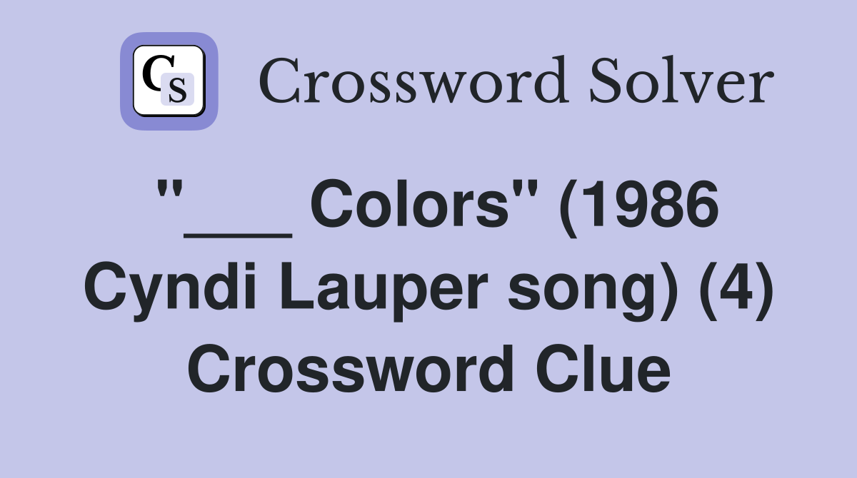 Colors quot (1986 Cyndi Lauper song) (4) Crossword Clue Answers