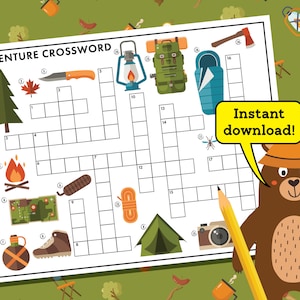 Adventure Crossword Puzzle Activity Sheet Fun Game for Family