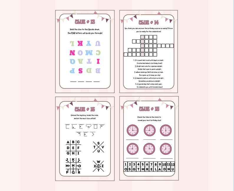 Birthday Scavenger Hunt Indoor Game for Kids 24 Unique Clue Card