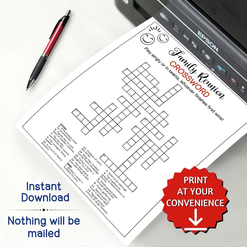 Family Reunion Crossword Puzzle Game Family Summer Gathering Family
