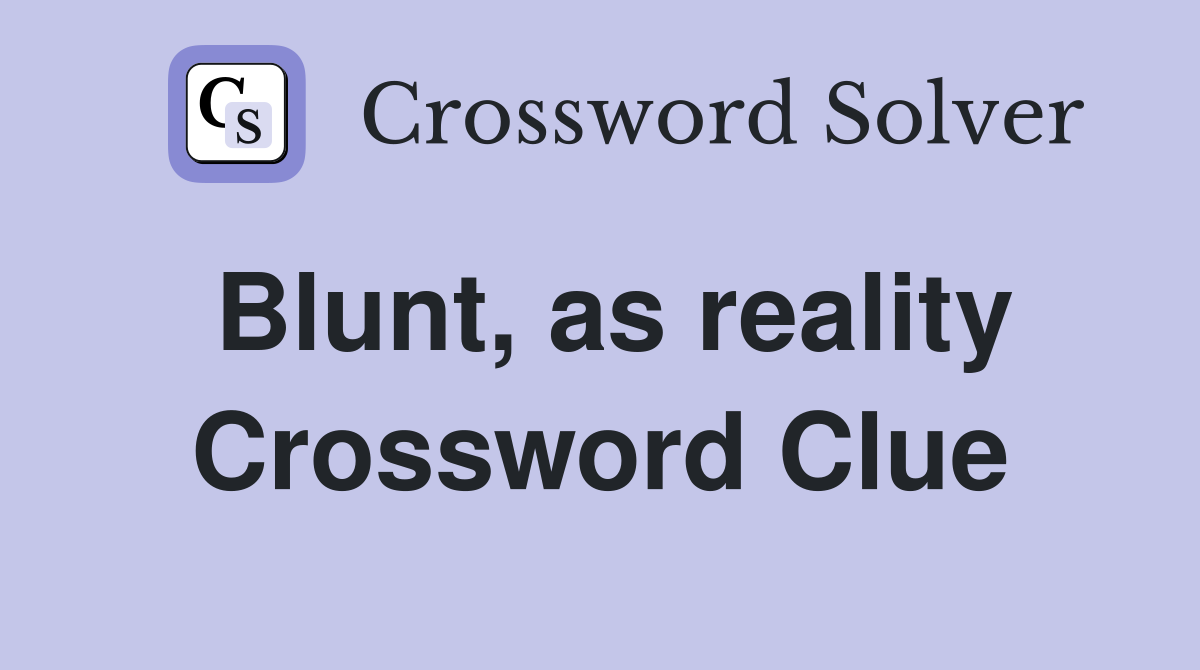 Blunt as reality Crossword Clue Answers Crossword Solver
