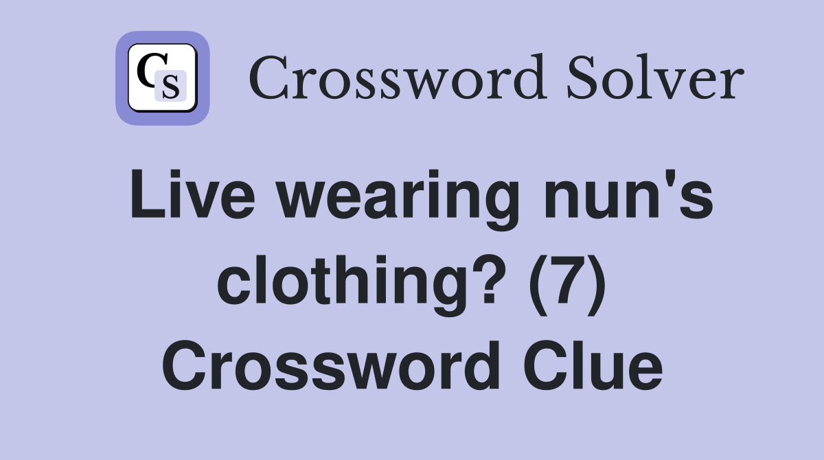 Live wearing nun #39 s clothing? (7) Crossword Clue Answers Crossword