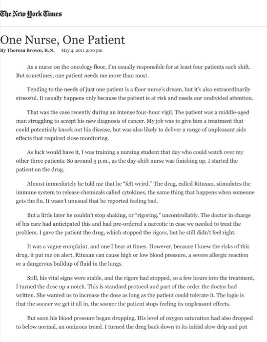 The New York Times One Nurse One Patient By Theresa Chegg com