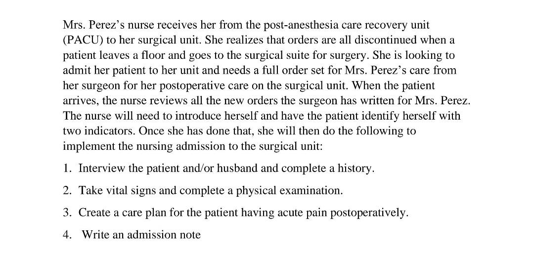 Solved Mrs Perez #39 s nurse receives her from the Chegg com