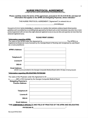 Georgia Nurse Practitioner Collaborative Agreement Templates