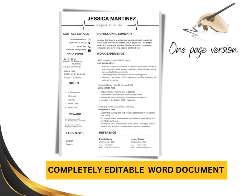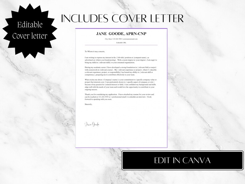Nursing Resume Template Cover Letter Editable Word Pages Registered