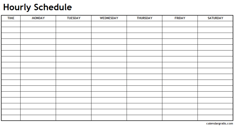 Printable Hourly Schedule Template 24 Hours Planner Blank Templates