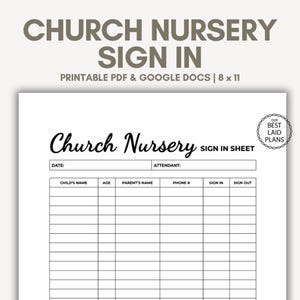 Church Nursery Sign in Sheet Google Docs and PDF Editable Sign in