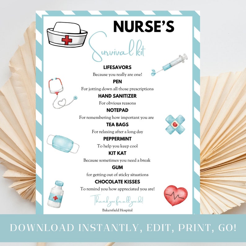 Nurse Survival Kit Printable Canva Editable Template Nurse Thank You