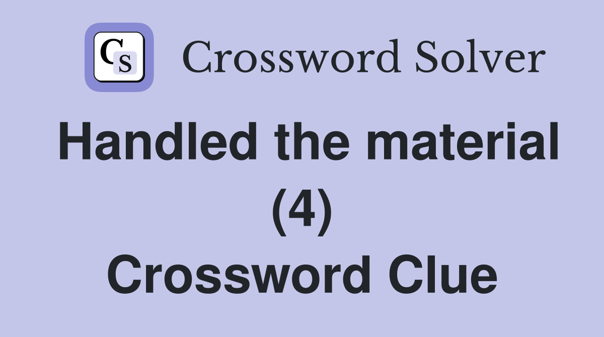 Handled the material (4) Crossword Clue Answers Crossword Solver