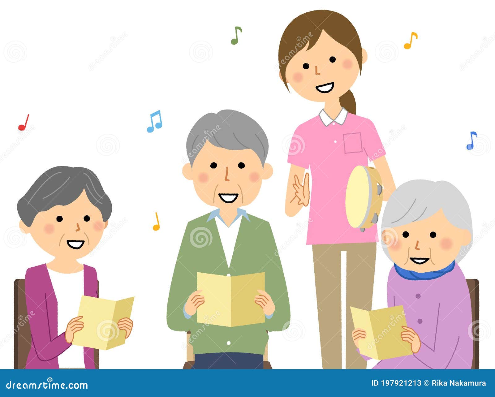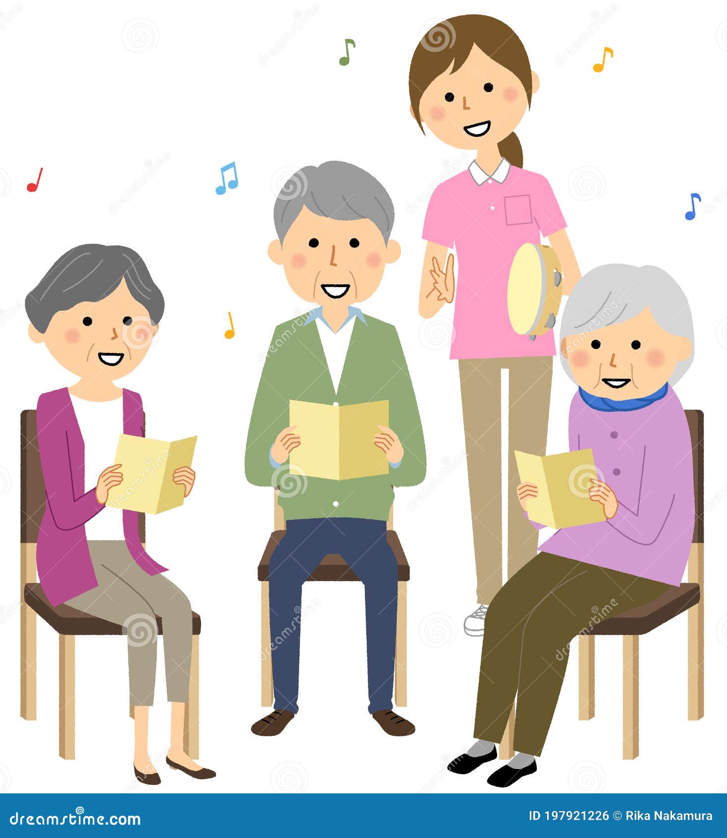 Elderly People Singing in a Recreation Stock Vector Illustration of