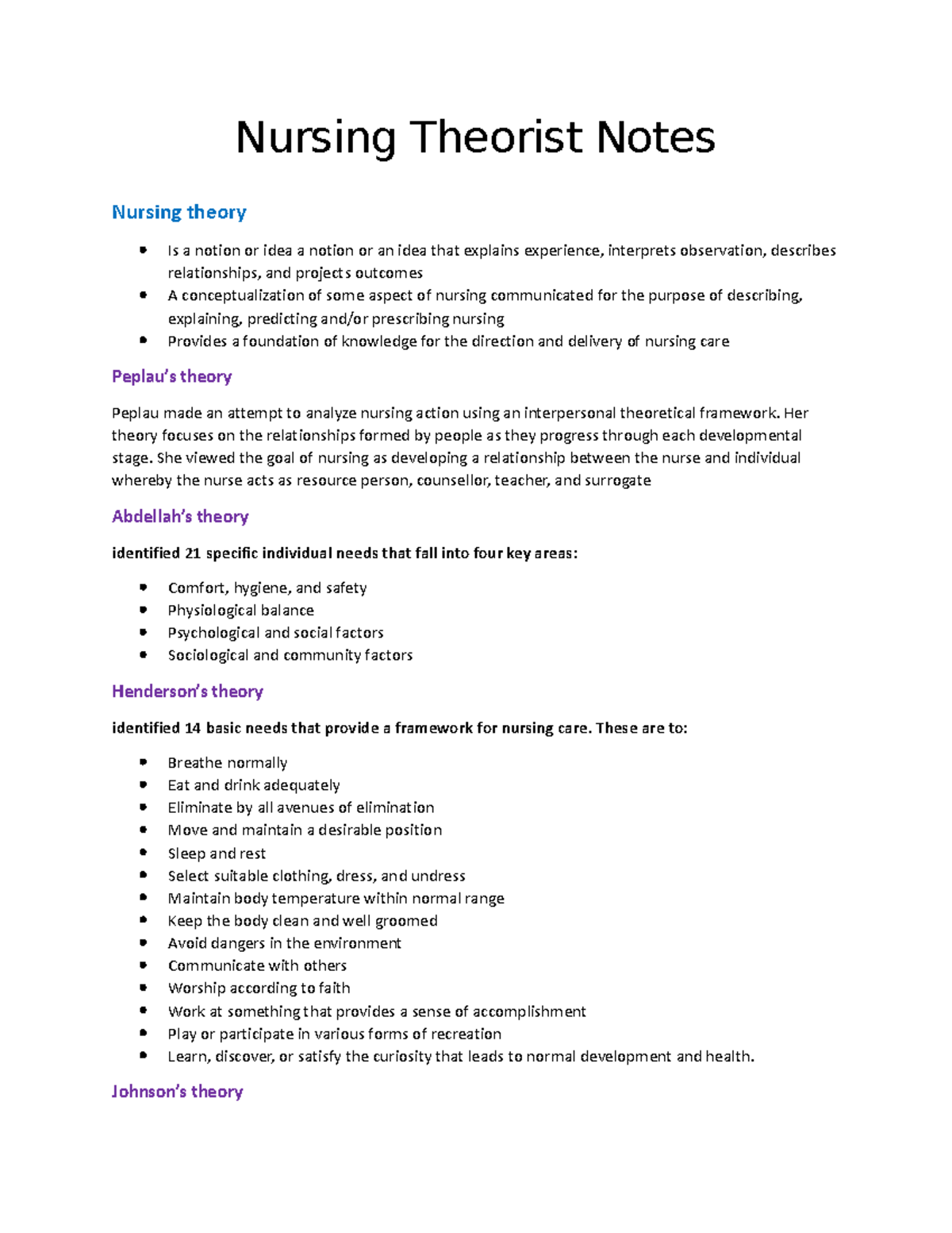 Nursing theorist notes Nursing Theorist Notes Nursing theory Is a